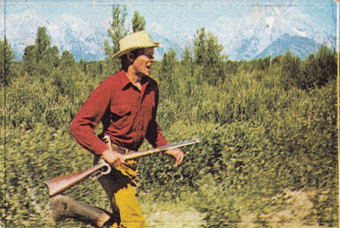 Spanish trading cards (printed on paper stock, rather than card stock) from The Monroes. The cards depict scenes from the episode "War Arrow." Each card has a Spanish language description of the scene on the back. The cards are approximately 3"x2" (scans are a bit larger than the original).